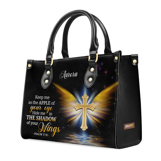 Jesuspirit | Personalized Leather Handbag With Handle | Christian Gifts For Women Of God | Hide Me In The Shadow Of Your Wings | Psalm 17:8 LHBH779