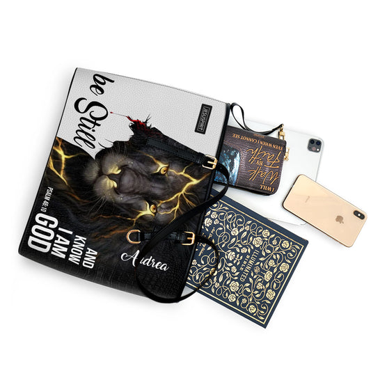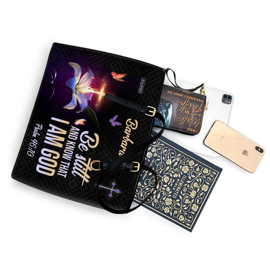 Awesome Personalized Large Leather Tote Bag - Be Still And Know That I Am God NUM501