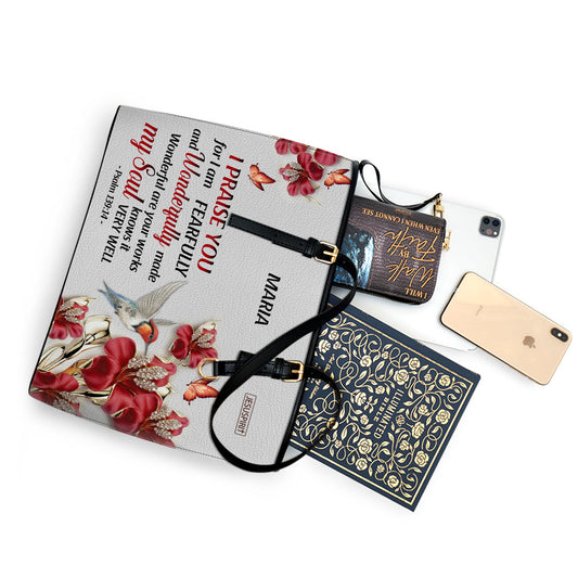 Lovely Personalized Large Leather Tote Bag - Wonderful Are Your Works NUH454