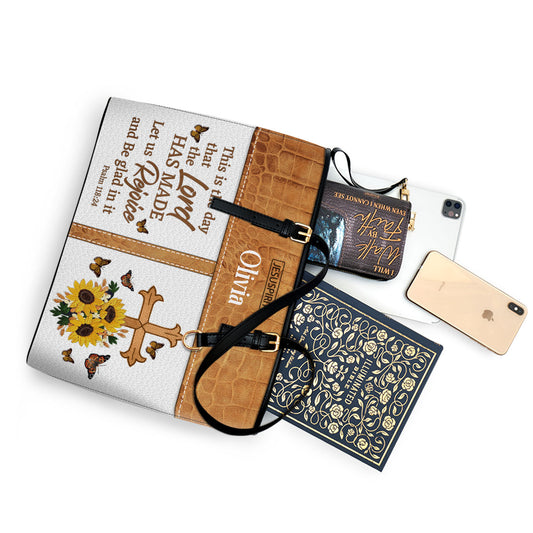 Unique Personalized Large Leather Tote Bag - Let Us Rejoice And Be Glad In It NUHN305
