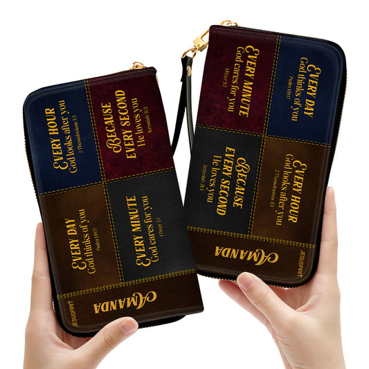 Jesuspirit | Christian Gift For Religious Woman | Personalized Zippered Leather Clutch Purse With Wristlet Strap Handle CPHN655