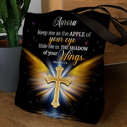 Jesuspirit | Christ Gifts For Women Of God | Psalm 17:8 | Hide Me In The Shadow Of Your Wings | Personalized Tote Bag TBH779