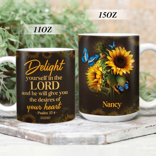 Meaningful Personalized White Ceramic Mug - Delight Yourself In The Lord NUH437