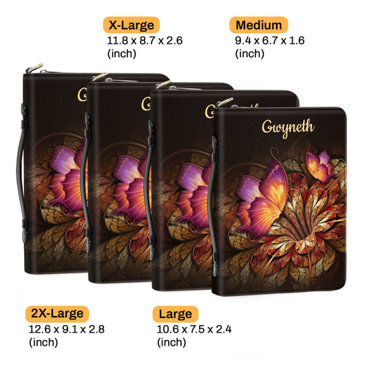 Jesuspirit | Personalized Zippered Bible Cover With Handle | Psalm 34:1 | Flower & Butterfly | I Will Bless The Lord At All Times BCH605