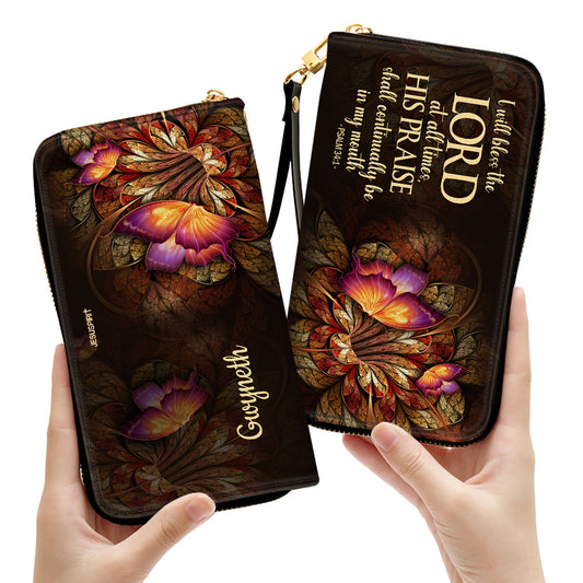 Jesuspirit | Personalized Leather Clutch Purse | Psalm 34:1 | I Will Bless The Lord At All Times | Worship Gift For People At Church CPH605