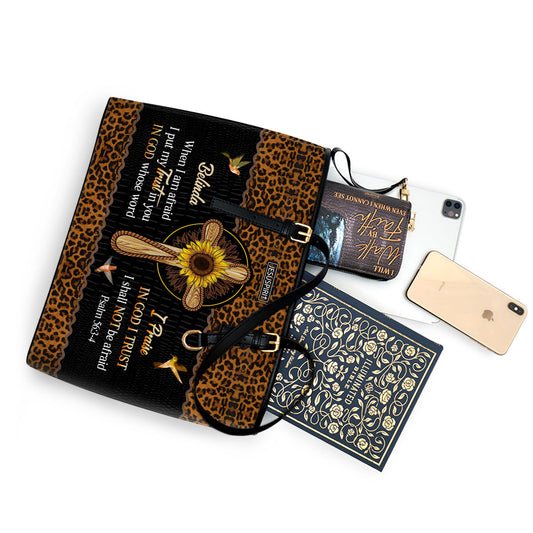 Personalized Large Leather Tote Bag - In God, Whose Word I Praise NUM434