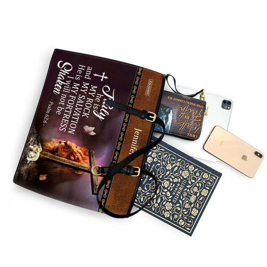He Is My Fortress, I Will Not Be Shaken - Personalized Large Leather Tote Bag NUM443