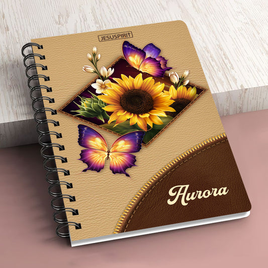 Lovely Personalized Sunflower And Butterfly Spiral Journal I04