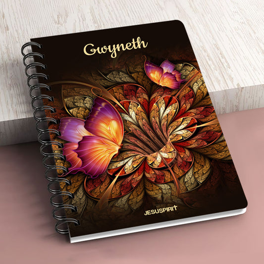 Jesuspirit | Personalized Spiral Journal | Butterfly And Flower | Scripture Gifts For Christian People SJH738