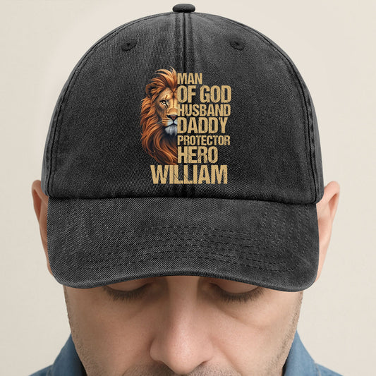 Man Of God Husband Daddy Protector Hero | Personalized Vintage Washed Denim Cap