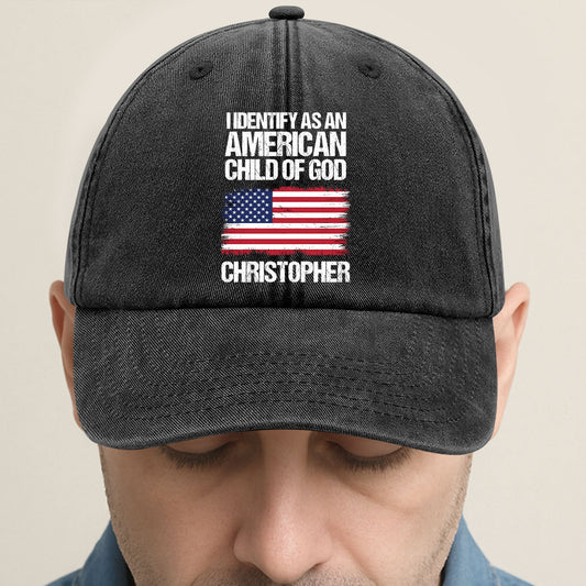 I Identify As An American Child Of God | Personalized Vintage Washed Denim Cap