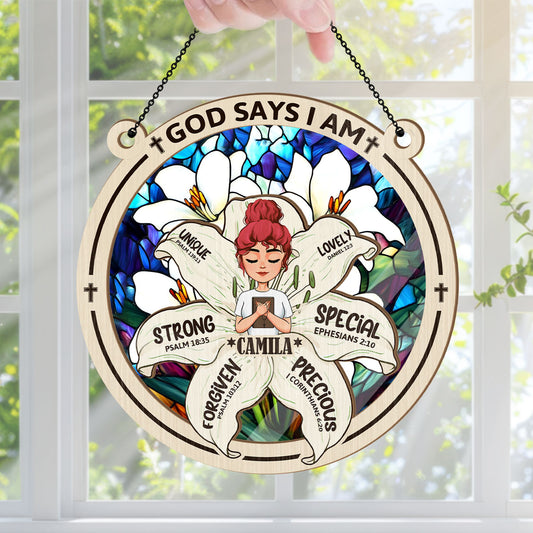 God Says I Am | Personalized Window Hanging Suncatcher JSWHSCPT1470L