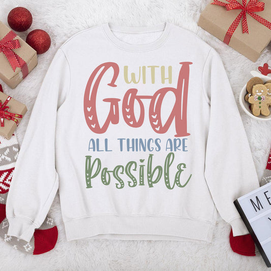 Awesome Christian Unisex Sweatshirt - All Things Are Possible With God HAP02