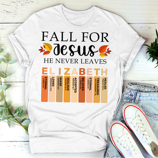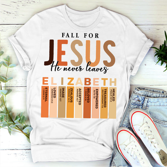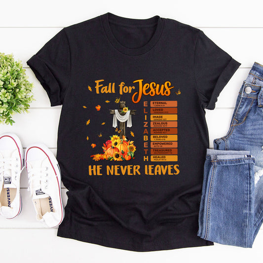 Fall For Jesus He Never Leaves | Personalized 2D Unisex T-shirt