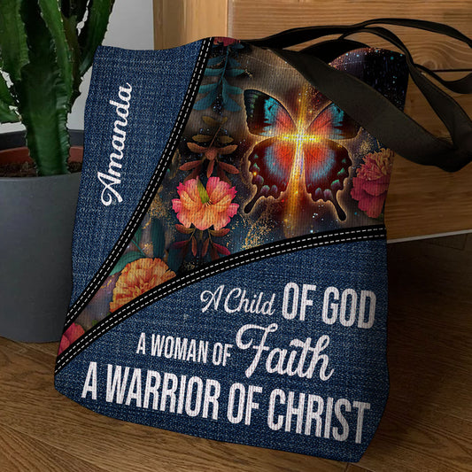 Jesuspirit | A Child Of God | Flower And Butterfly | Shining Cross Personalized Tote Bag M15