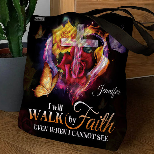 I Will Walk By Faith Even When I Cannot See Him - Awesome Personalized Tote Bag NUH433