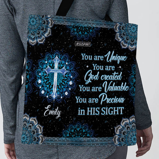 Beautiful Personalized Cross Christian Tote Bag - You Are God Created AM253