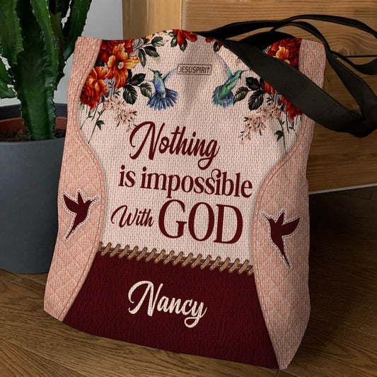 Pretty Personalized Tote Bag - Nothing Is Impossible With God M04