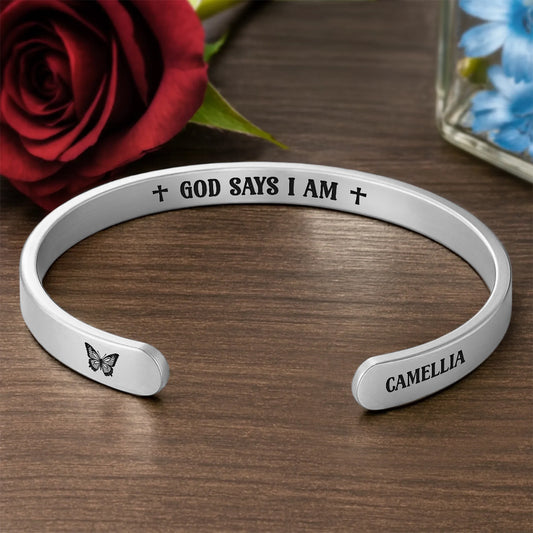 God Says I Am | Personalized Cuff Bangle Bracelet With Box