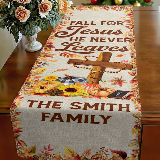 Fall For Jesus He Never Leaves | Personalized Table Runner
