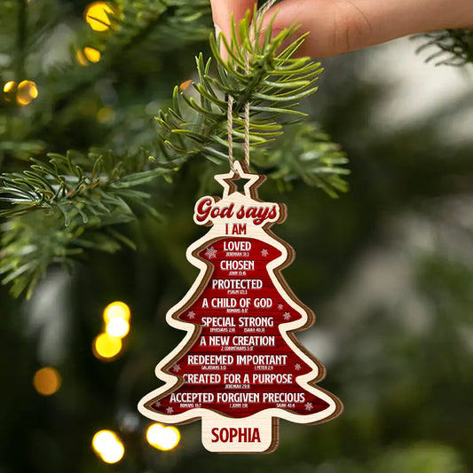 God Says I Am | Personalized 2-Layered Wooden Ornament
