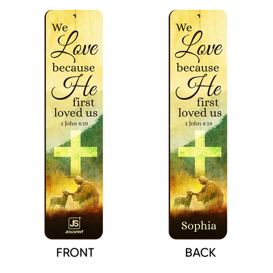 Jesuspirit Personalized Wooden Bookmarks | 1 John 4:19 | Jesus and Lamb | We Love Because He First Loved Us HN124