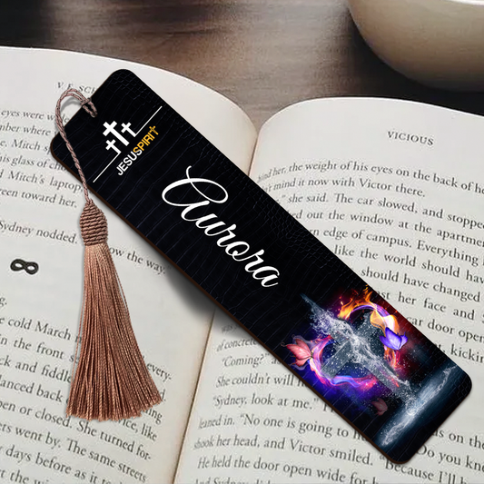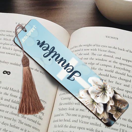 Jesuspirit | Personalized Black Wooden Bookmark | Faith Cross And Roses HN125