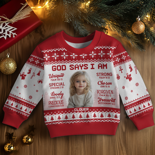 I Am A Child Of God | Personalized Kid Wool Sweater JSKWSPH1997T