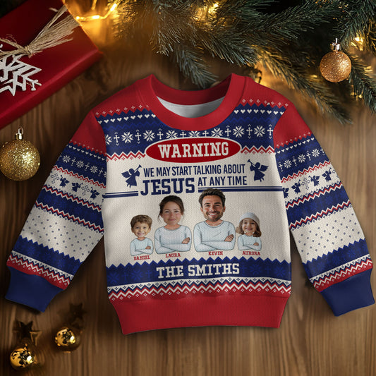 Warning We May Talking About Jesus At Any Time | Personalized Wool Sweater JSWSWPH1988L