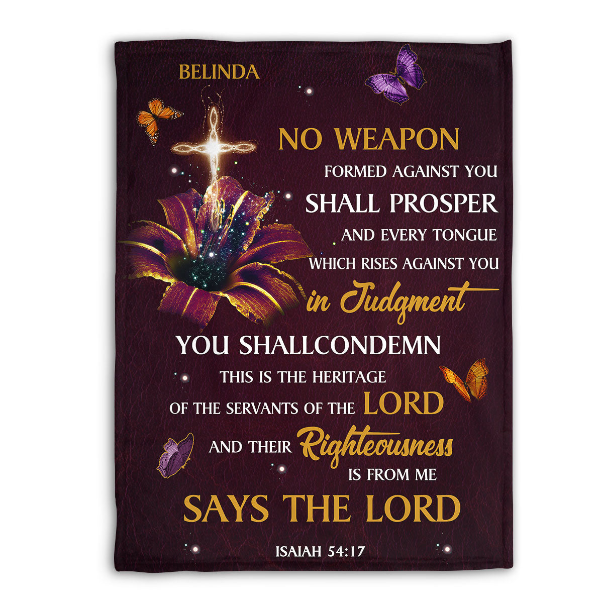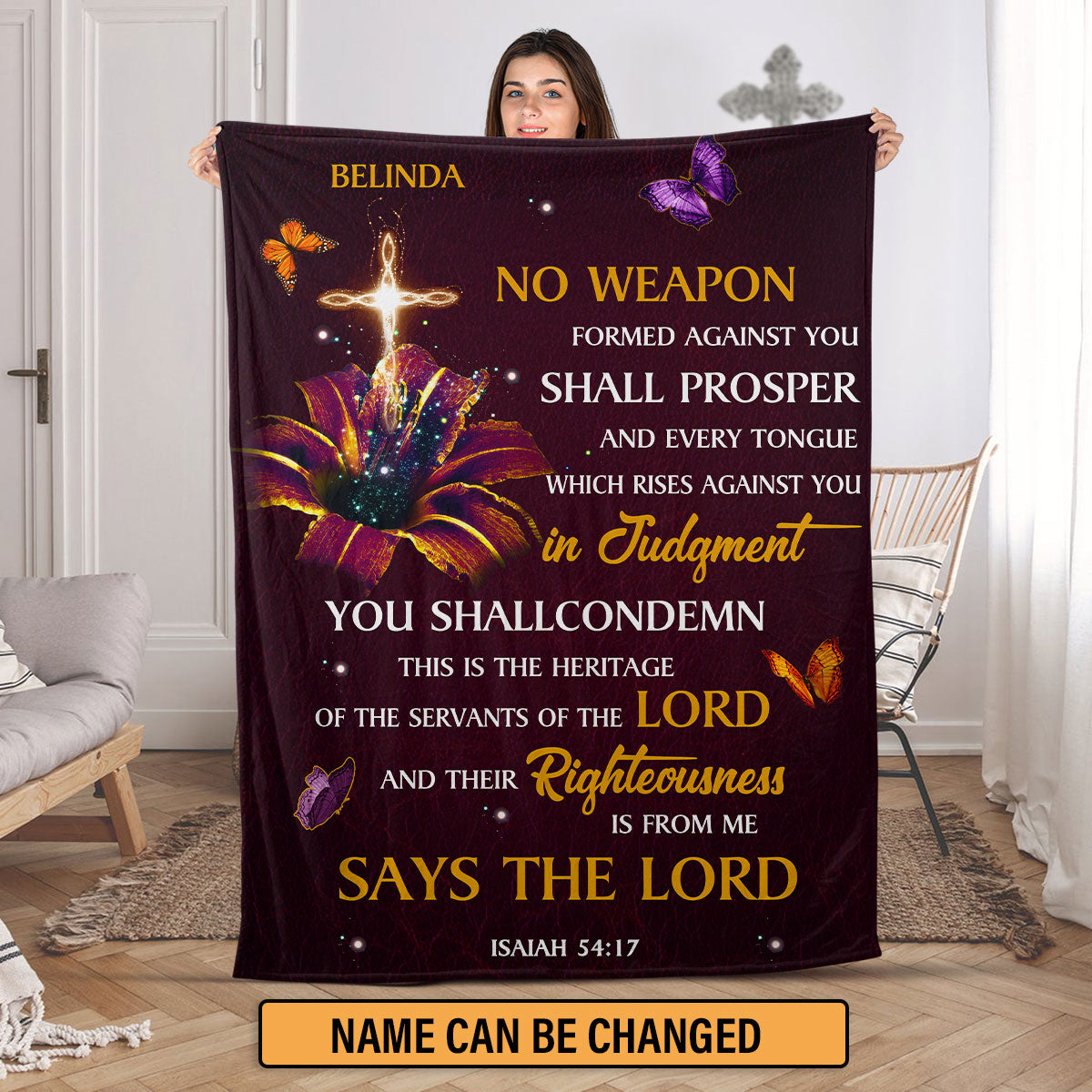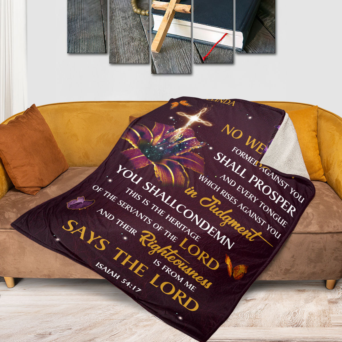 Beautiful Personalized Fleece Blanket - No Weapon Formed Against You Shall Prosper NUM394