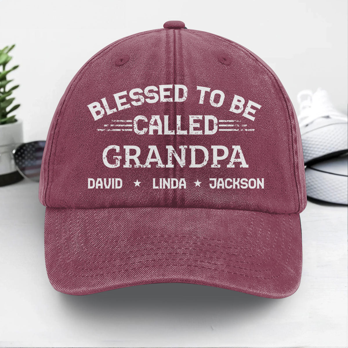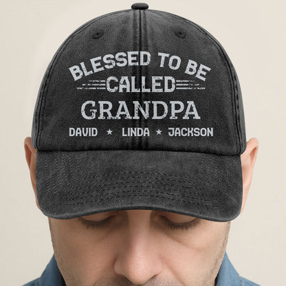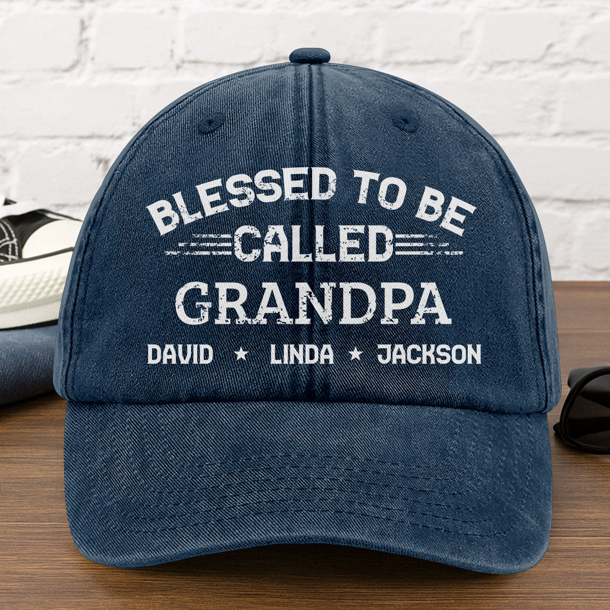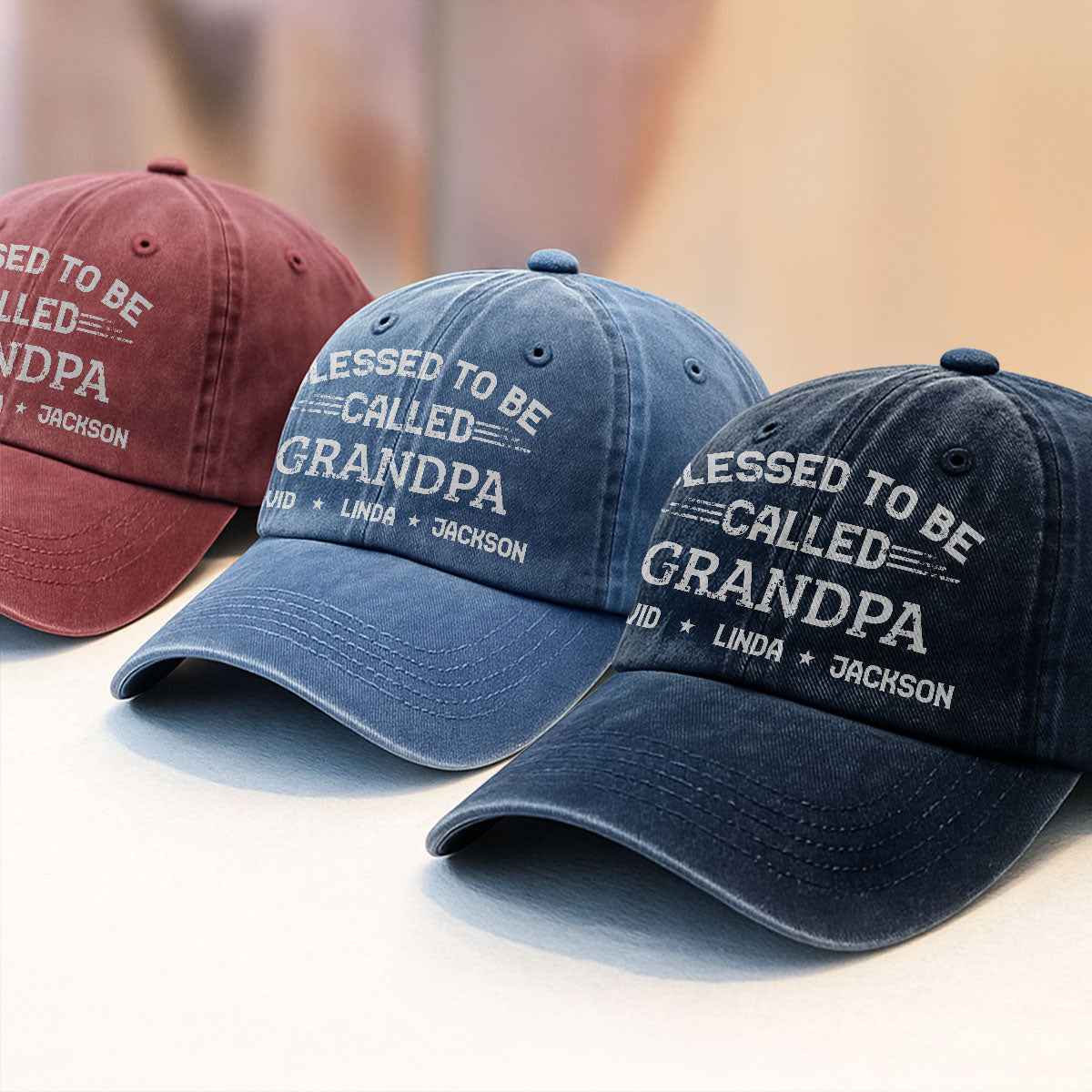 Blessed To Be Called Grandpa | Personalized Vintage Washed Denim Cap