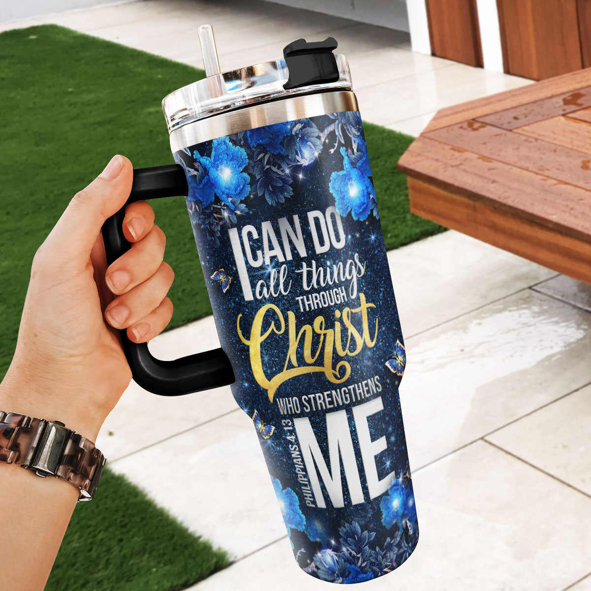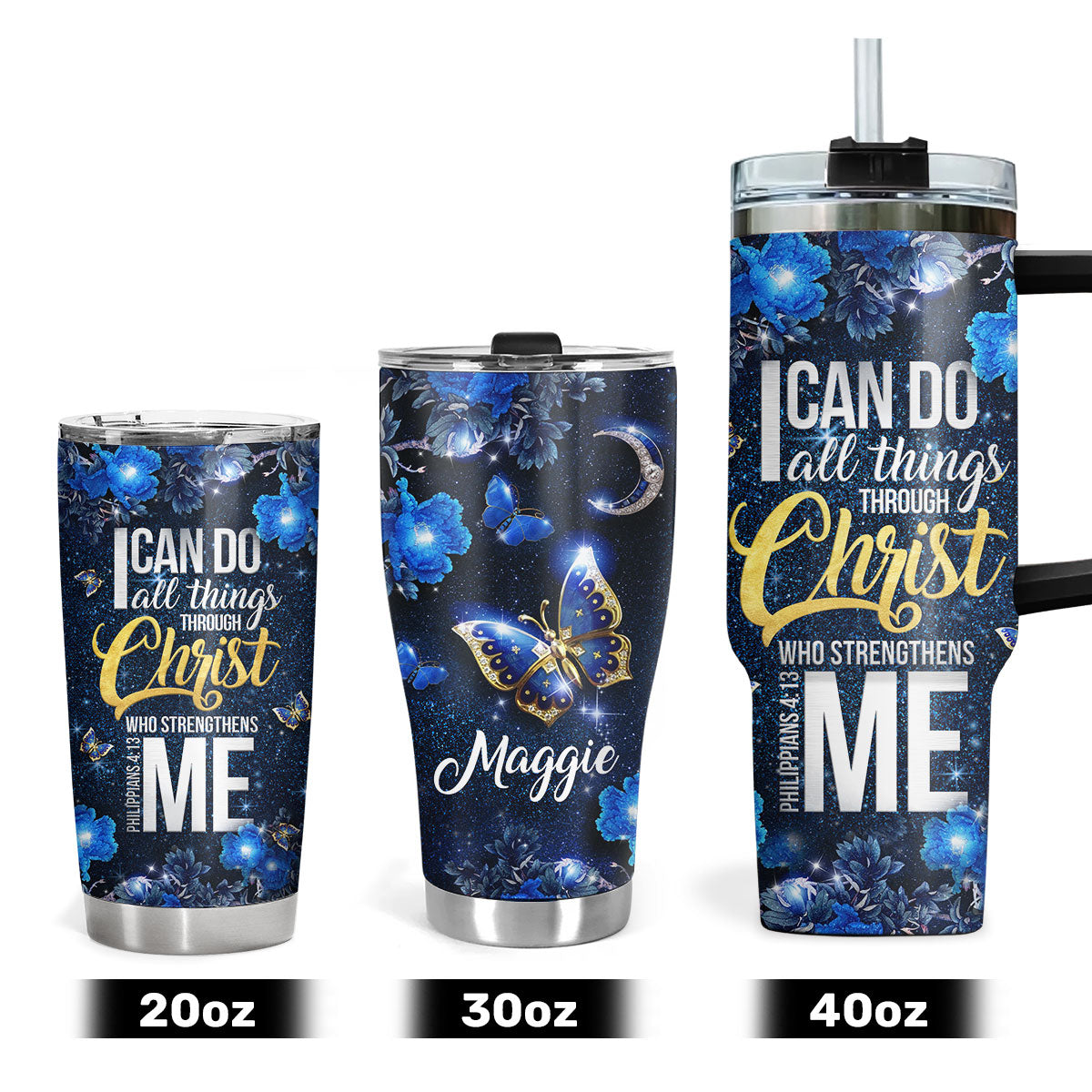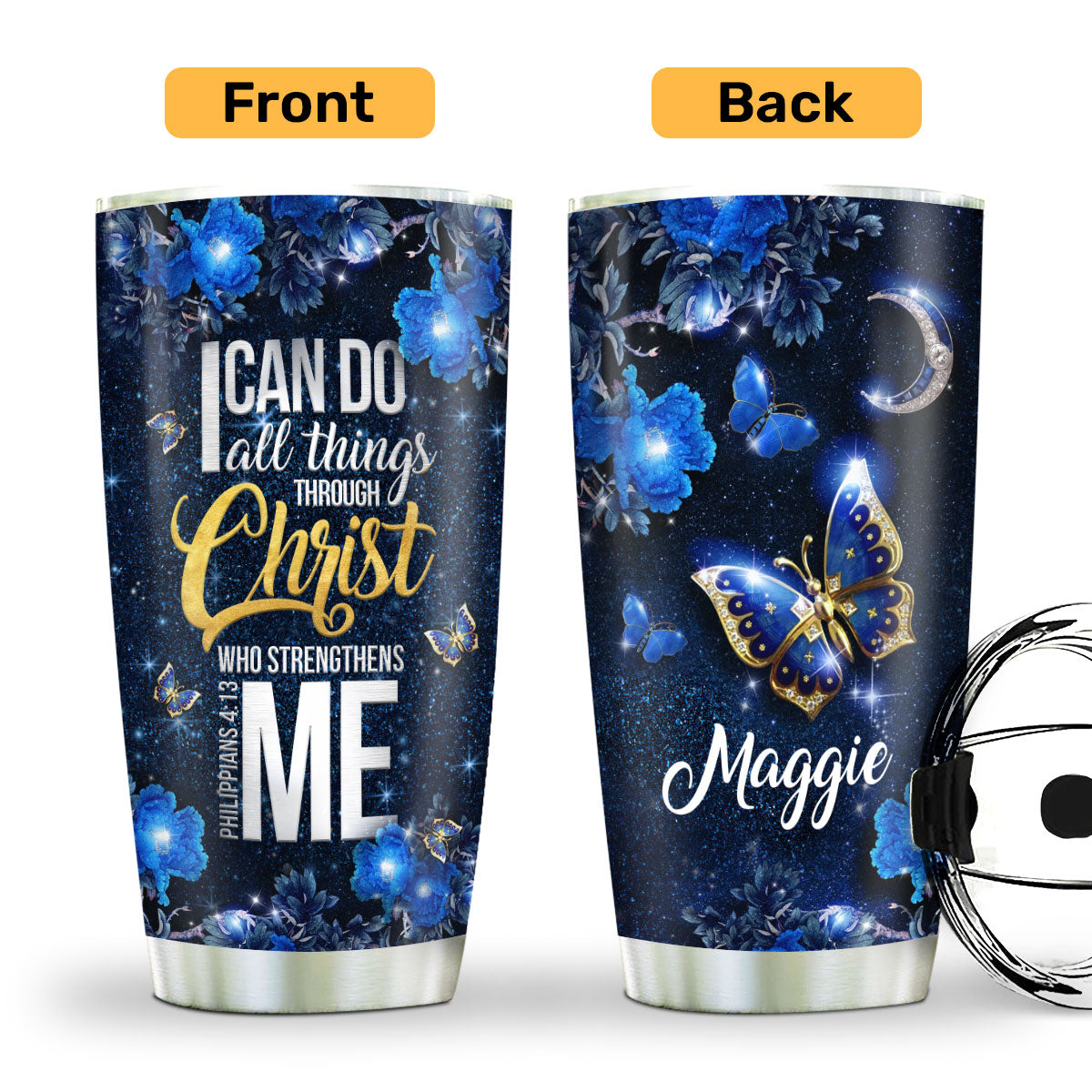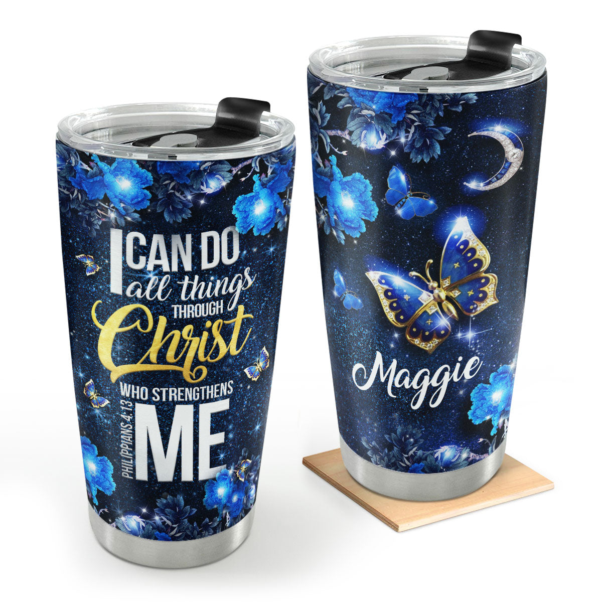 Elegant Personalized Butterfly Stainless Steel Tumbler 20oz - I Can Do All Things Through Christ Who Strengthens Me NA124