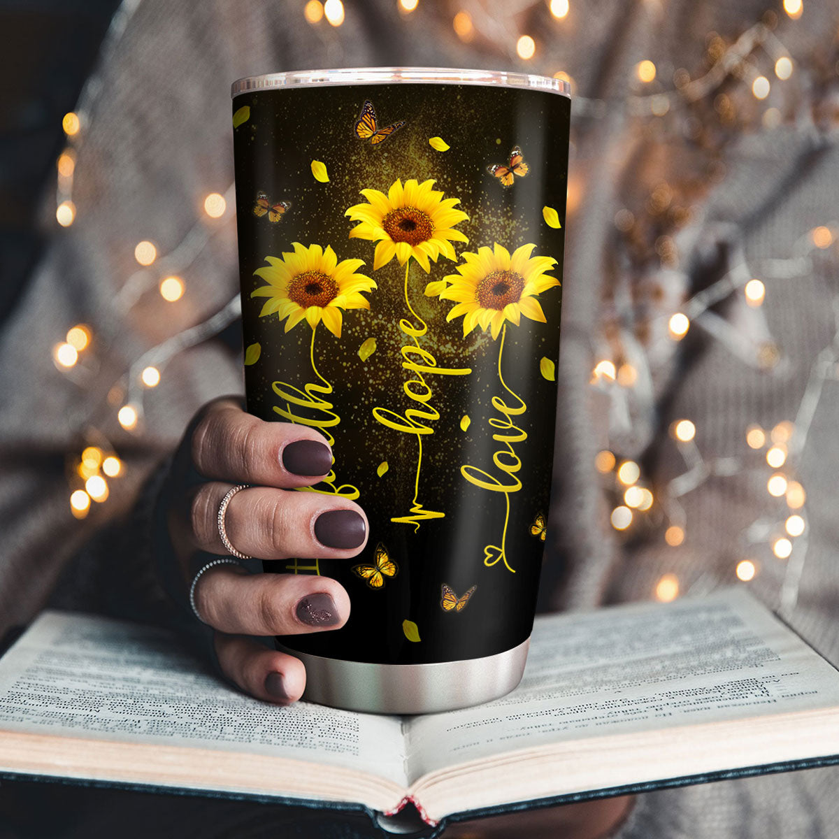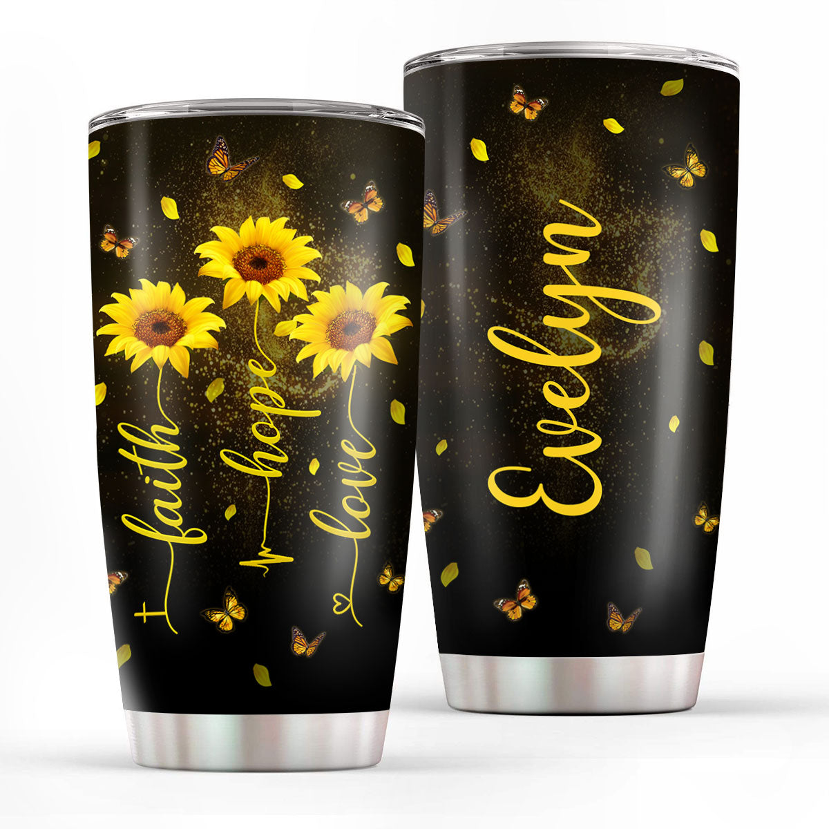 Faith, Hope And Love - Lovely Personalized Sunflower Stainless Steel Tumbler 20oz HHN210A