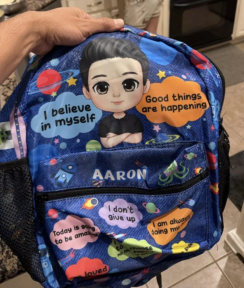 My daughter loved her school bag and water bottle with picture and her name on it, it's really unique.