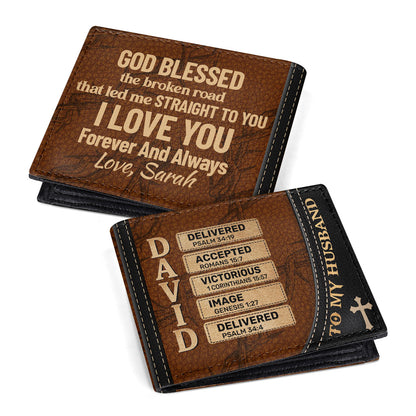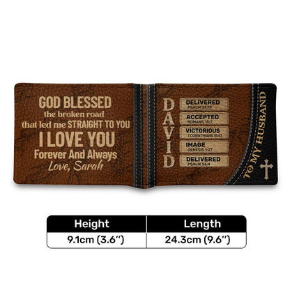 God Blessed The Broken Road That Led Me Straight To You | Personalized Leather Folded Wallet