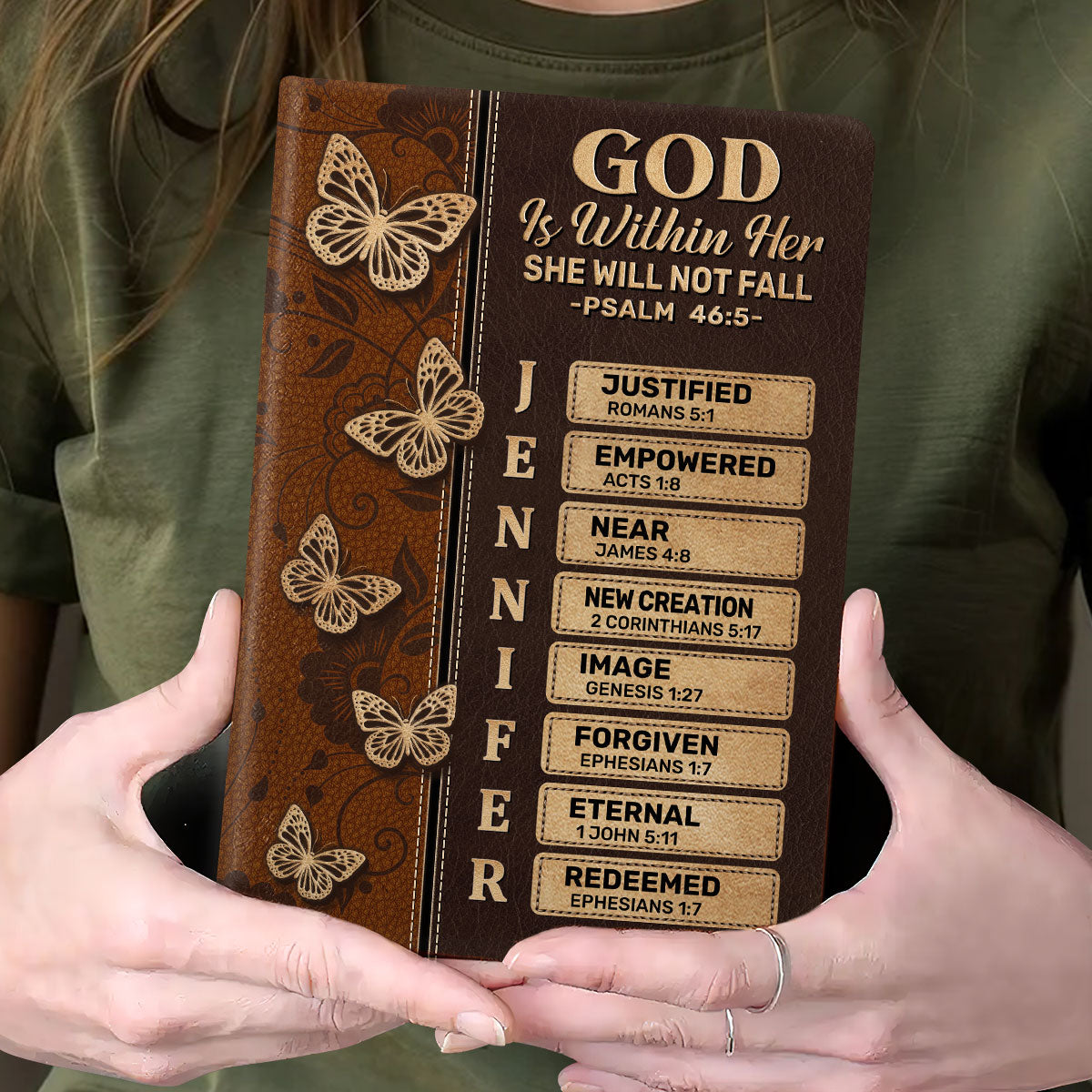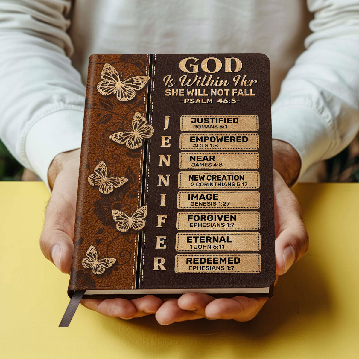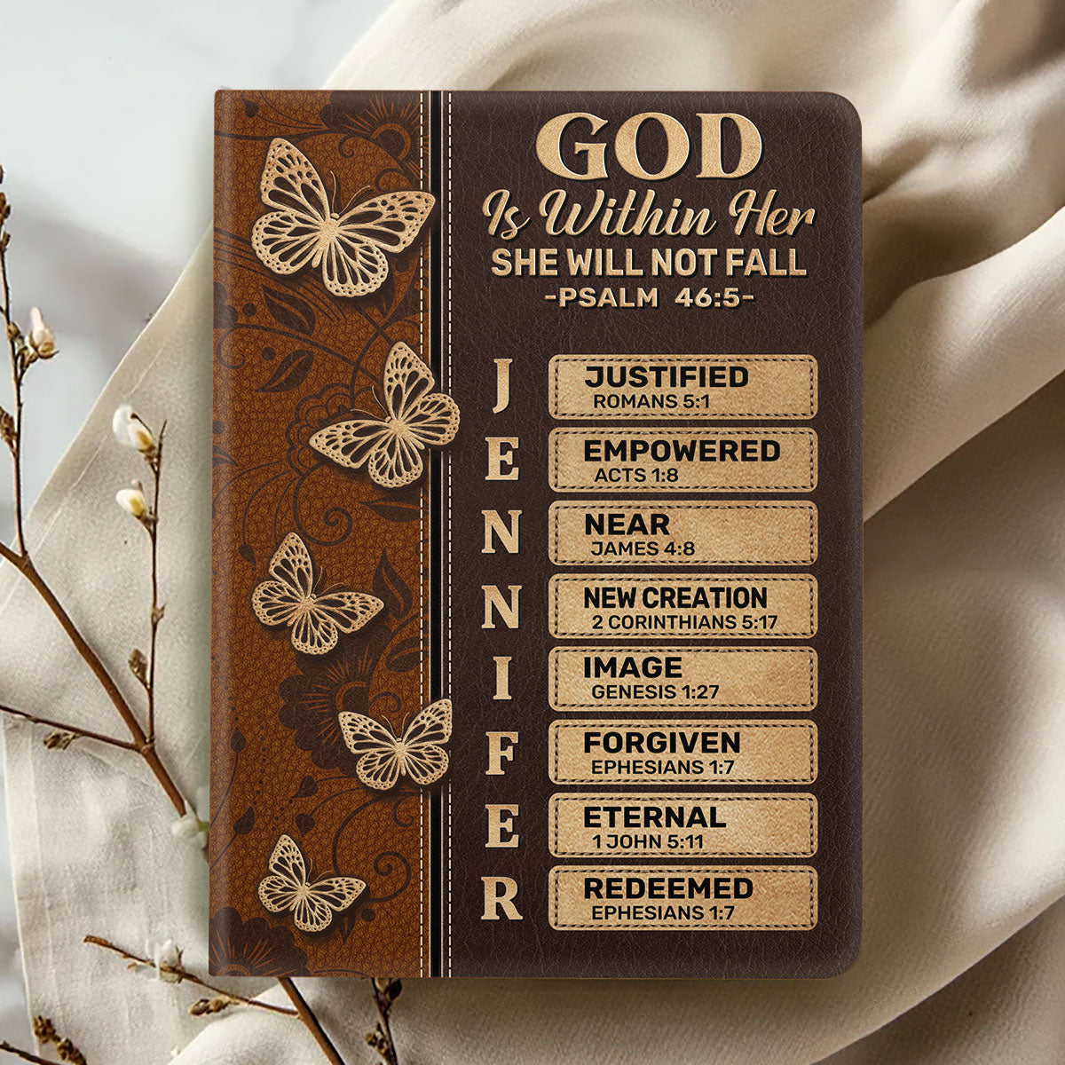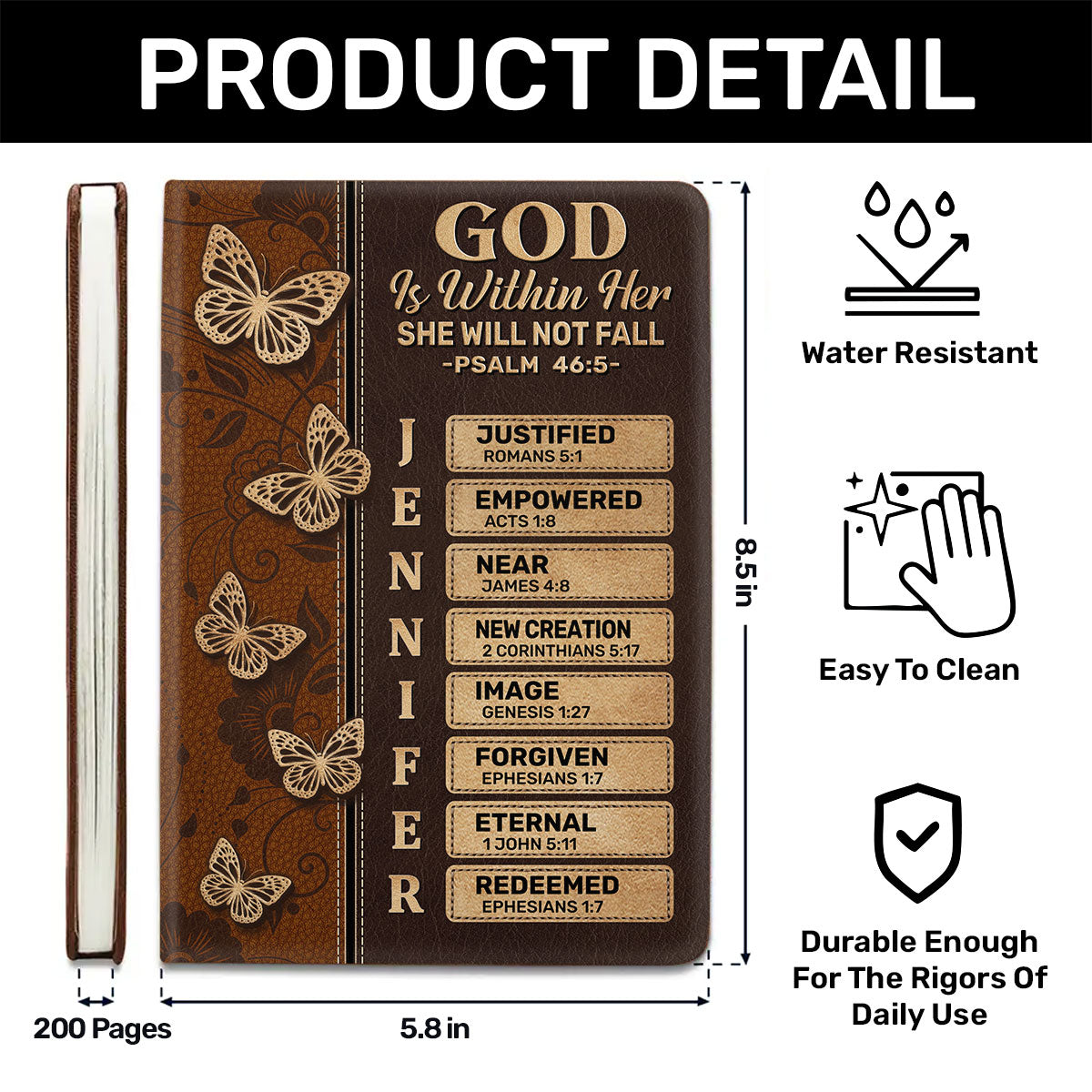 God Is Within Her She Will Not Fall | Personalized Leather Cover Notebook