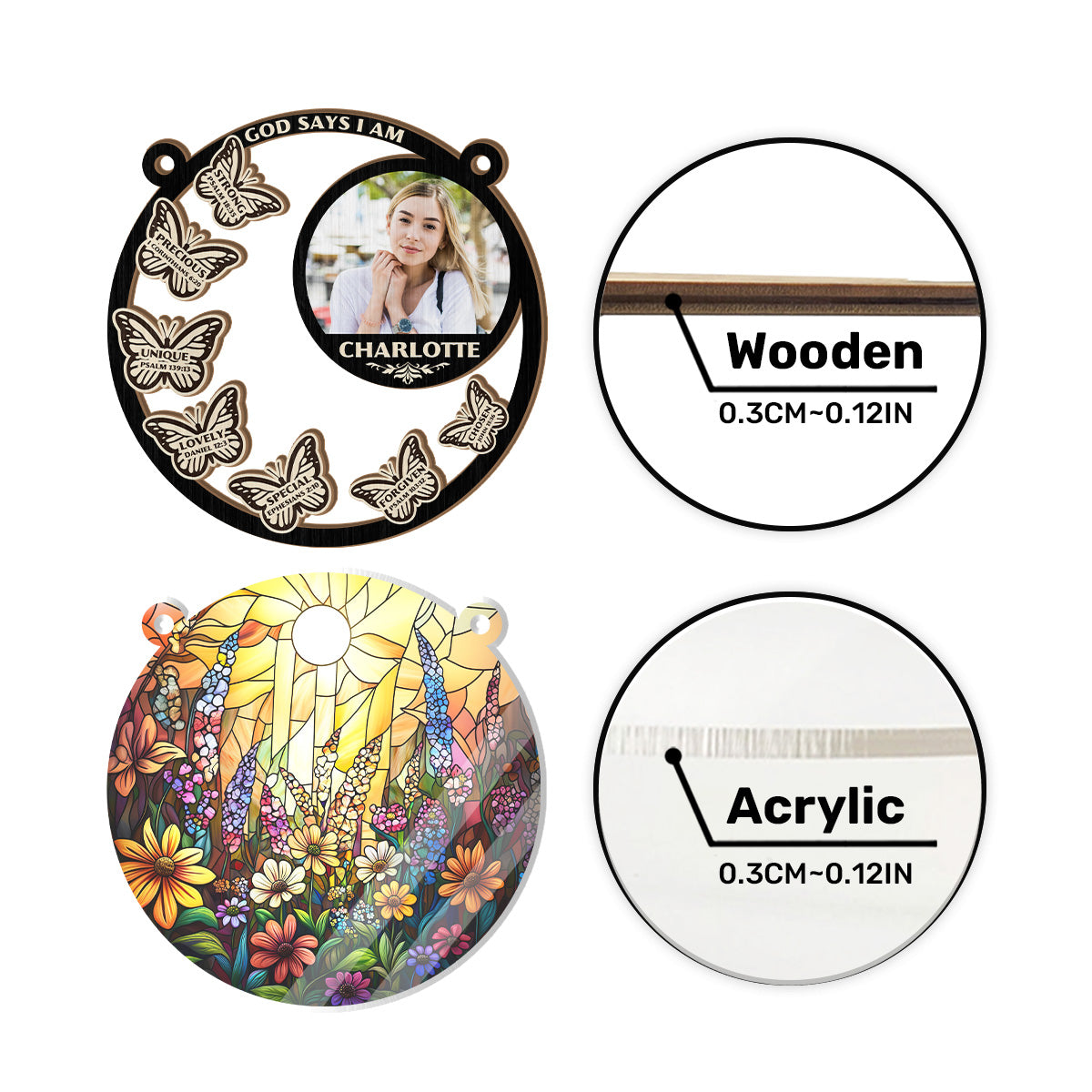 High quality material: The front of this suncatcher is made from wood and mounted on acrylic material. - Usage: Ideal for hanging in windows, glass doors, or any location where sunlight can pass through.