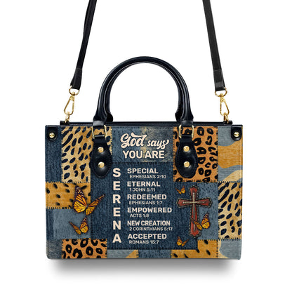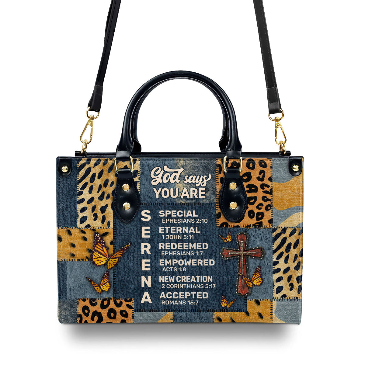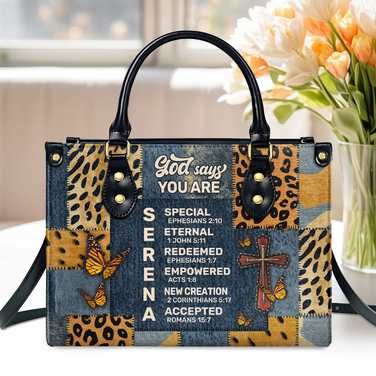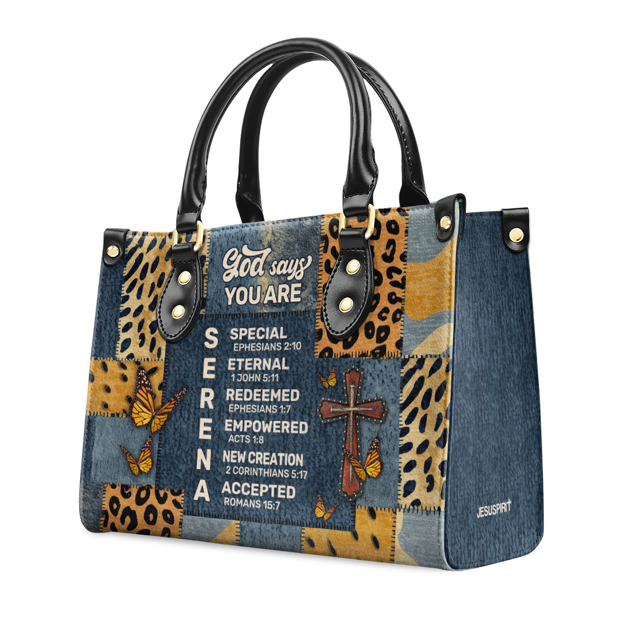 Experience the harmonious blend of emotion and functionality with Jesuspirit's Personalized Leather Handbag.