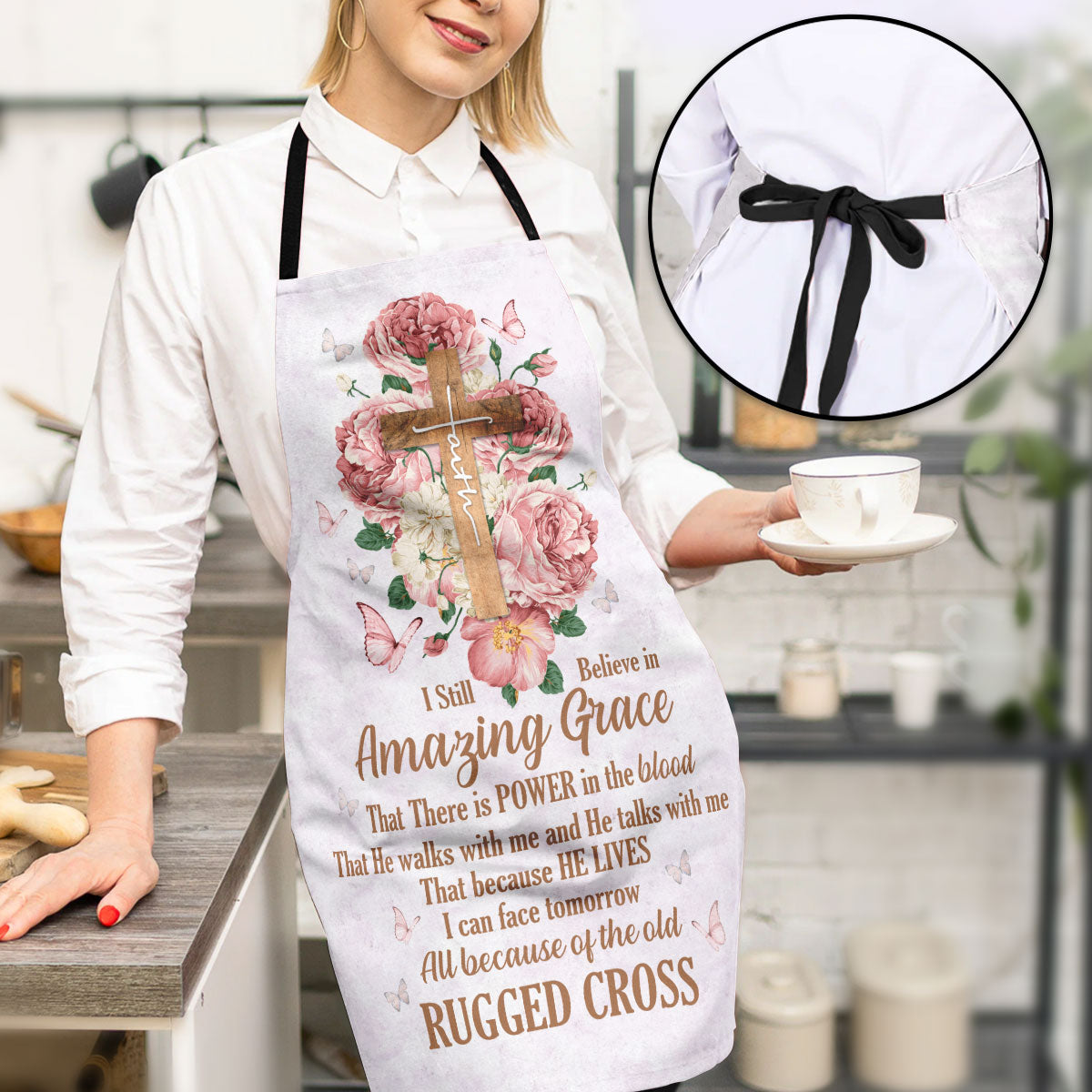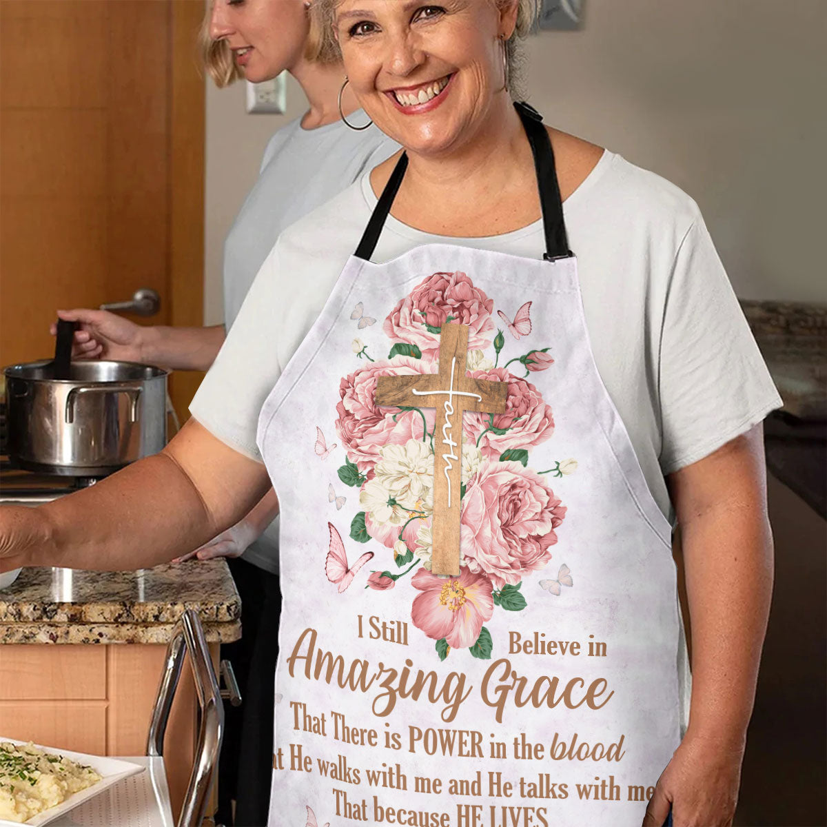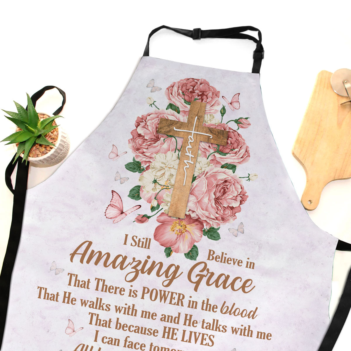 Jesuspirit | Apron With Neck Strap | Flower And Cross | I Still Believe In Amazing Grace A15