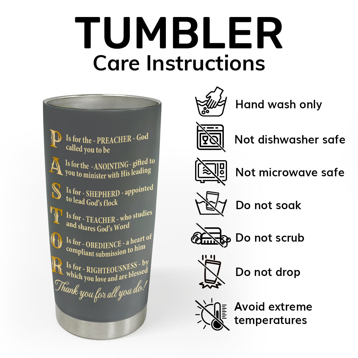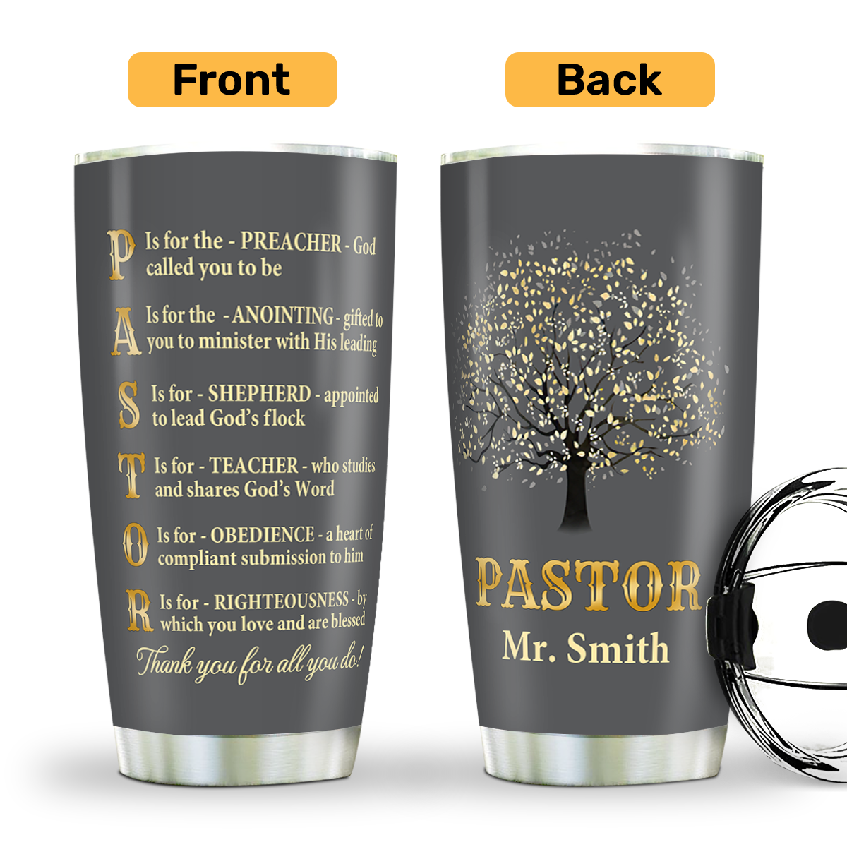 Jesuspirit | Christian Faith Gifts | Stainless Steel Tumbler | Thank You Pastor SSTNAM1002B