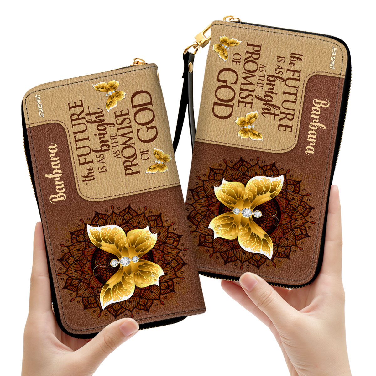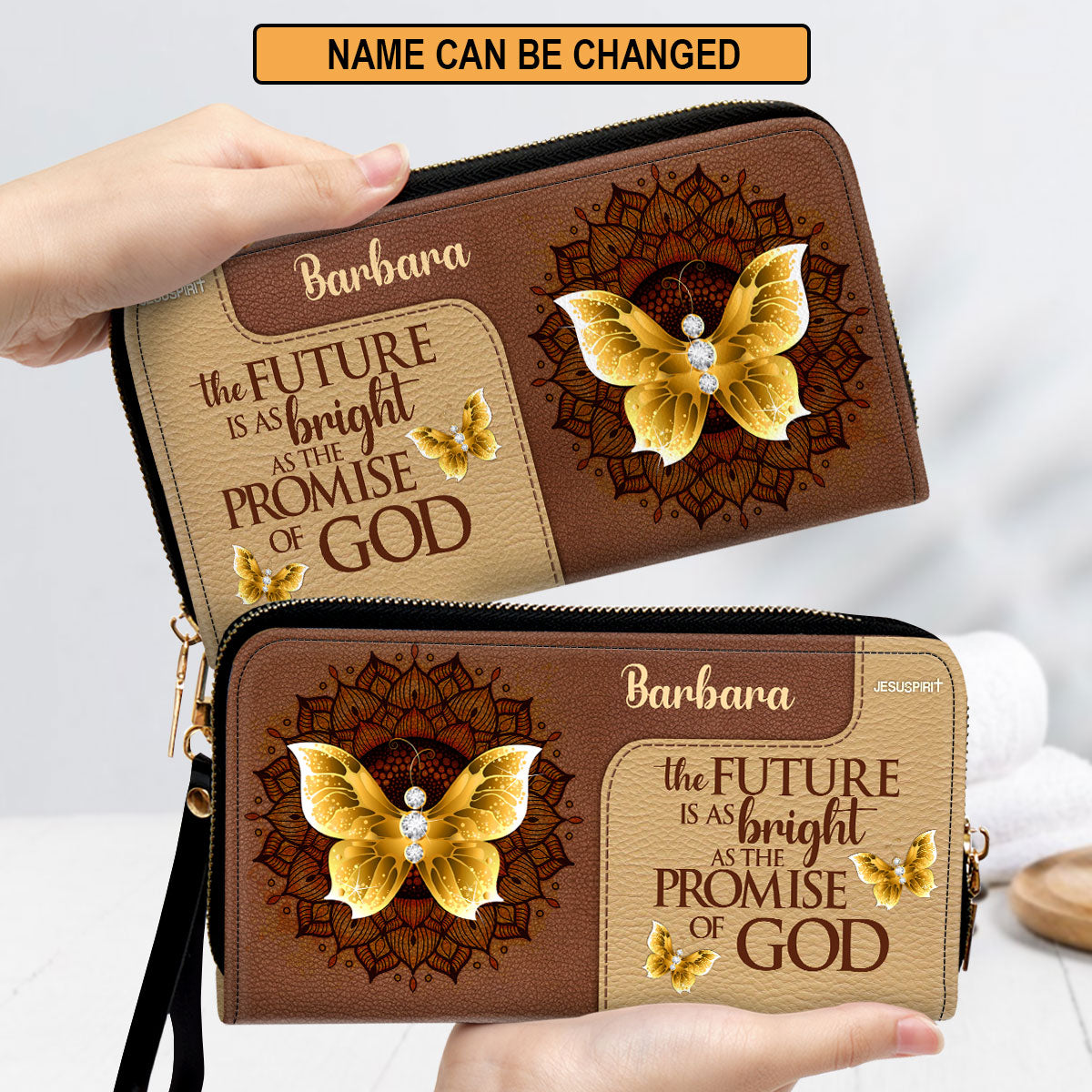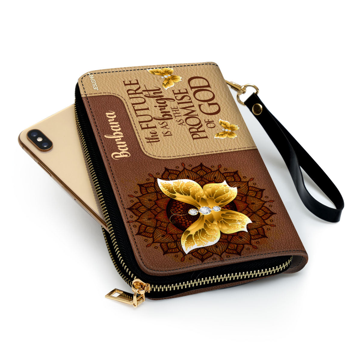Jesuspirit | Flower And Butterfly | Personalized Leather Clutch Purse With Wristlet Strap Handle | Spiritual Gifts For Religious Woman CPH738