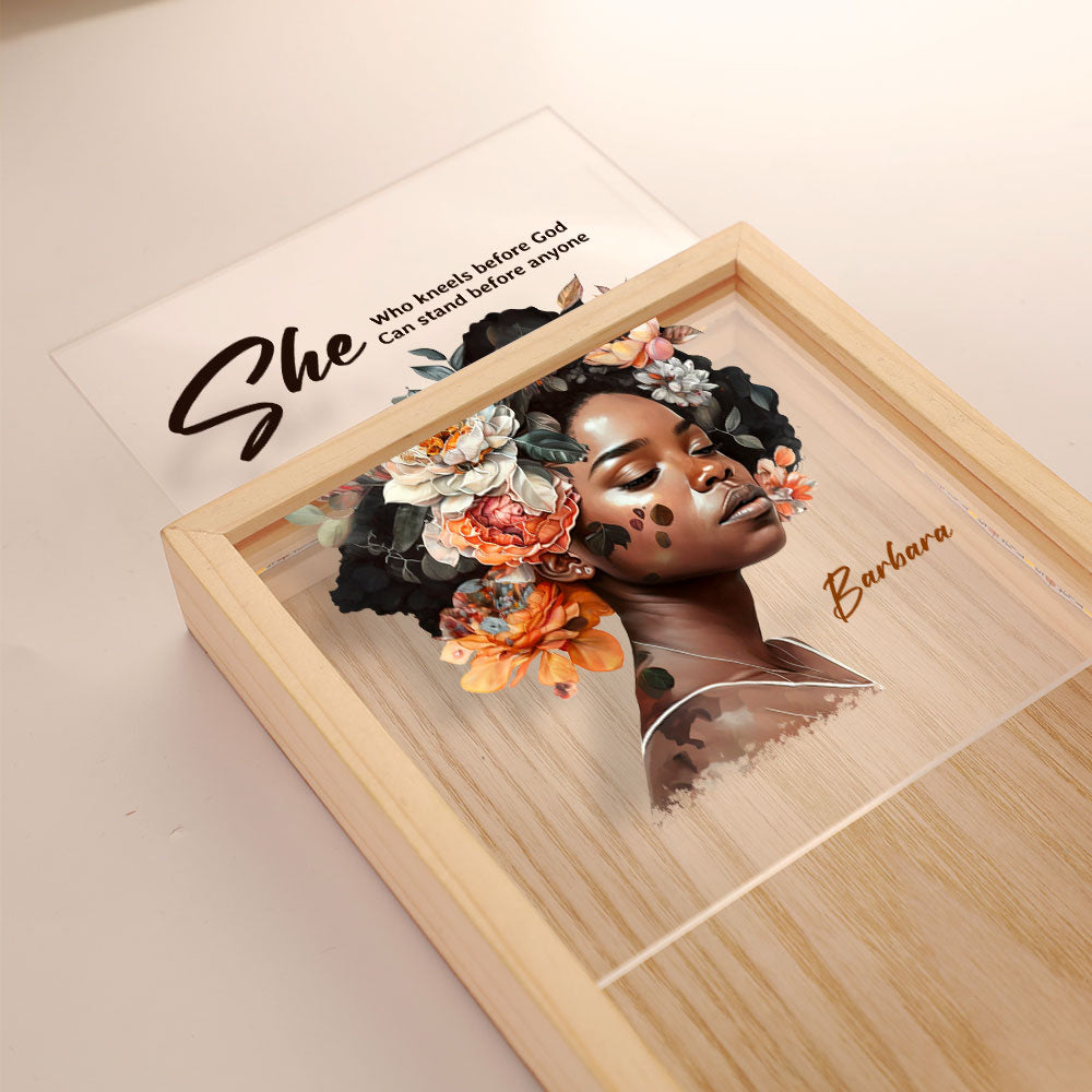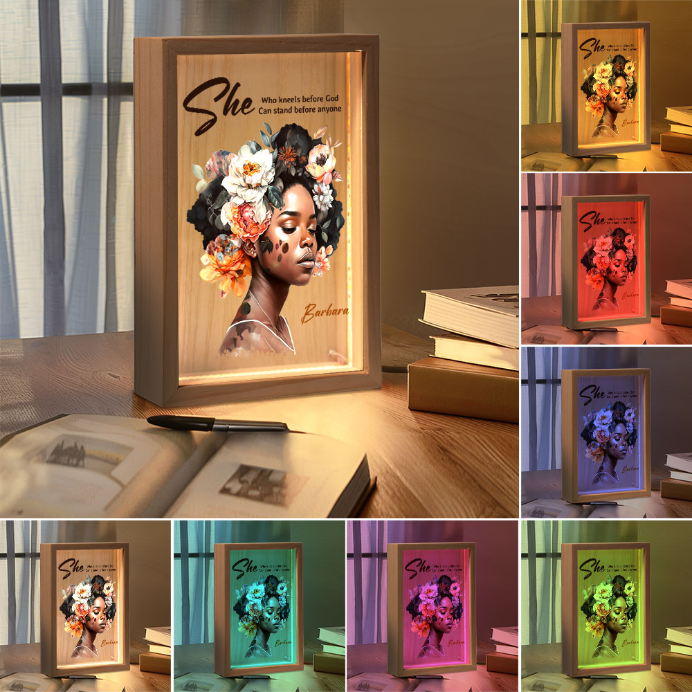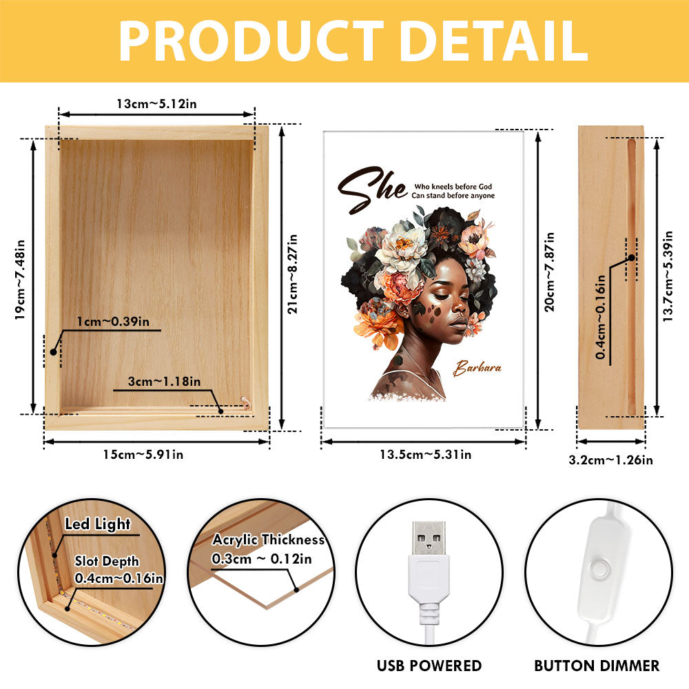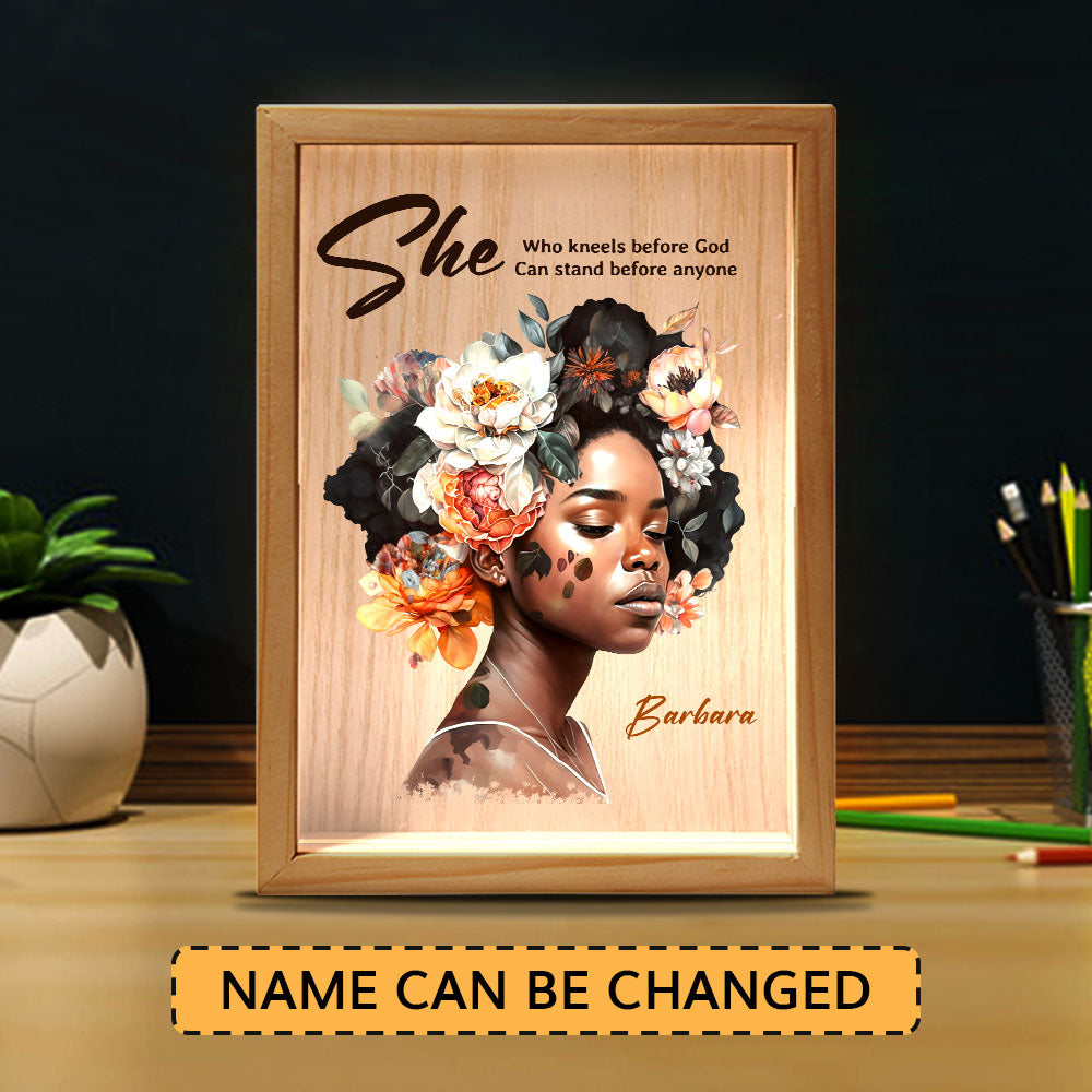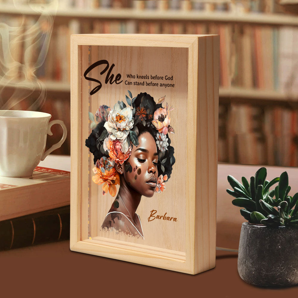 Jesuspirit Personalized Frame Light Box | She Who Kneels Before God Can Stand Before Anyone FLBHN06