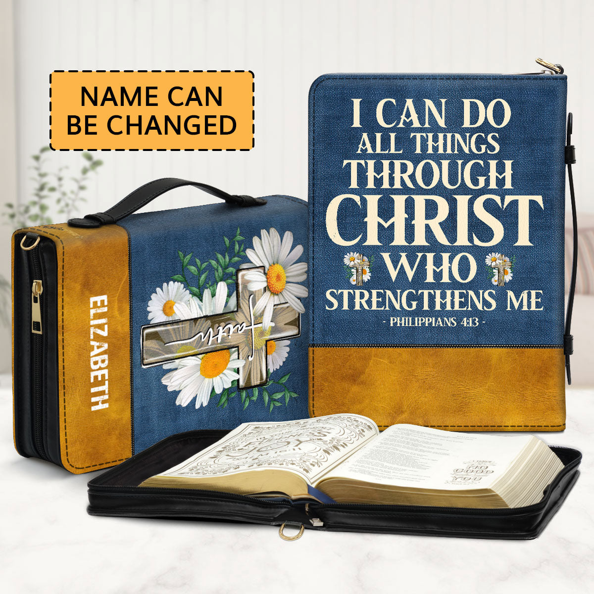 Jesuspirit | Personalized Leather Bible Cover | I Can Do All Things Through Christ Who Strengthens Me | Philippians 4:13 | BCM779