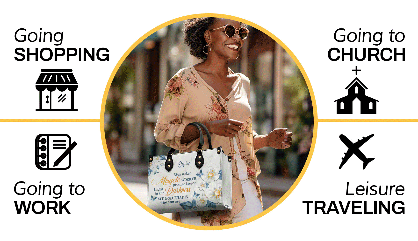 Jesuspirit's Personalized Leather Handbag intertwines faith and fashion, creating an uplifting accessory for Christian women. Adorned with meaningful Bible verses, each handbag carries a piece of your faith journey wherever you go. It's a profound reminder of love and strength within you. Perfect for yourselfor as a heartfelt religious gift for Christian ladies on special occasions.