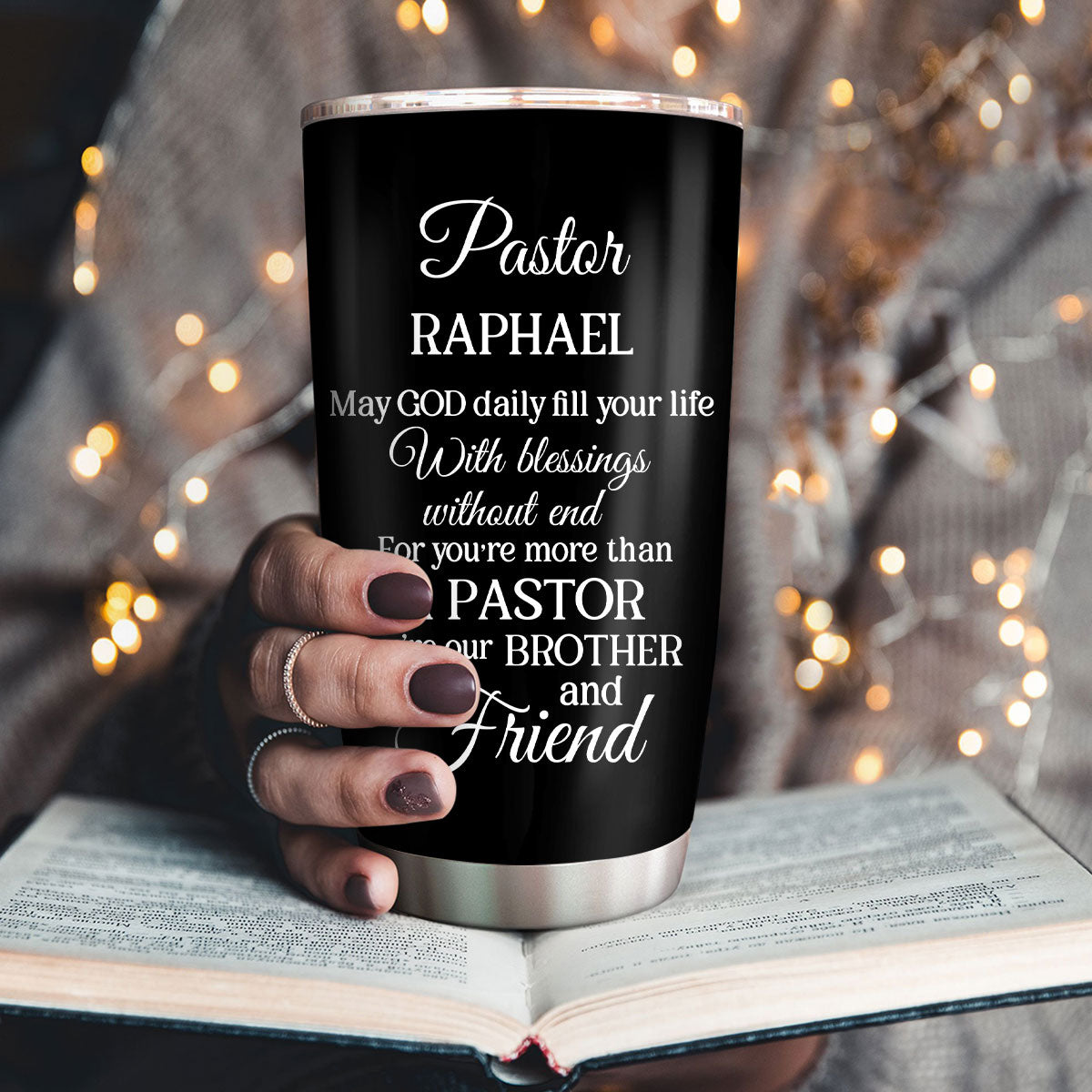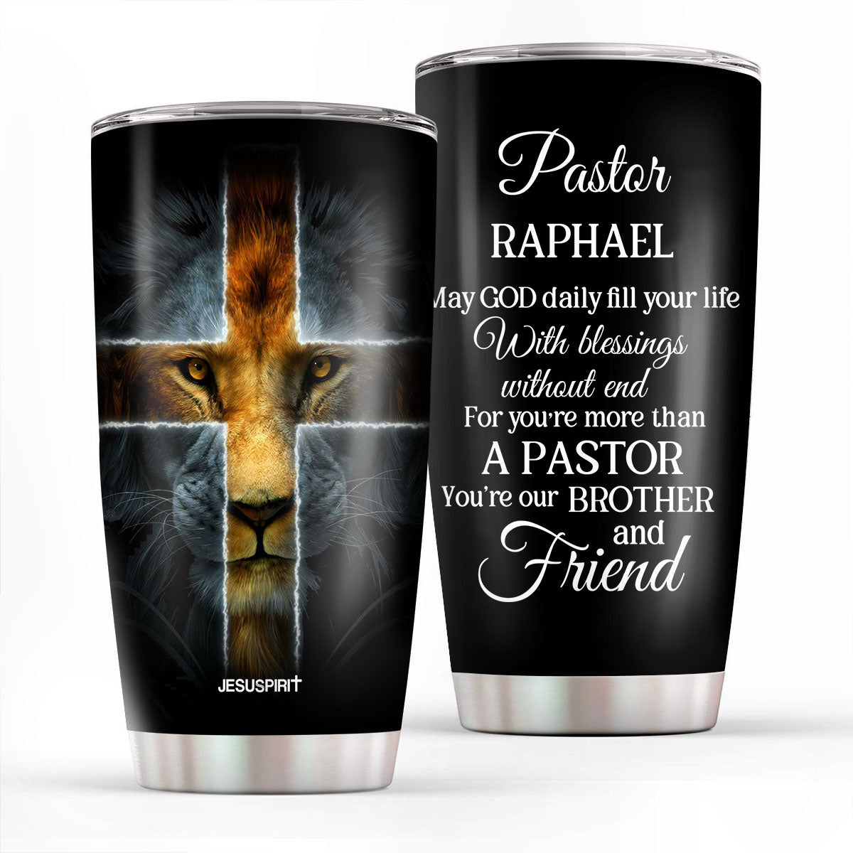 Jesuspirit | Personalized Stainless Steel Tumbler 20oz For Pastor | Cross & Lion | You Are Our Brother And Friend SSTH714
