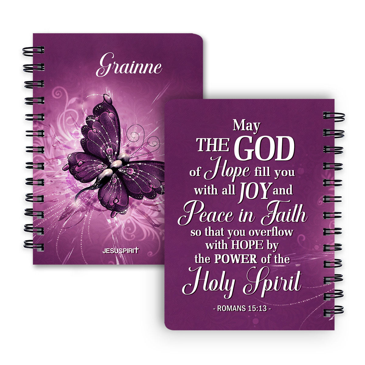 Jesuspirit | Scripture Gifts For Church Members | Romans 15:13 | Personalized Purple Butterfly Spiral Journal SJH729