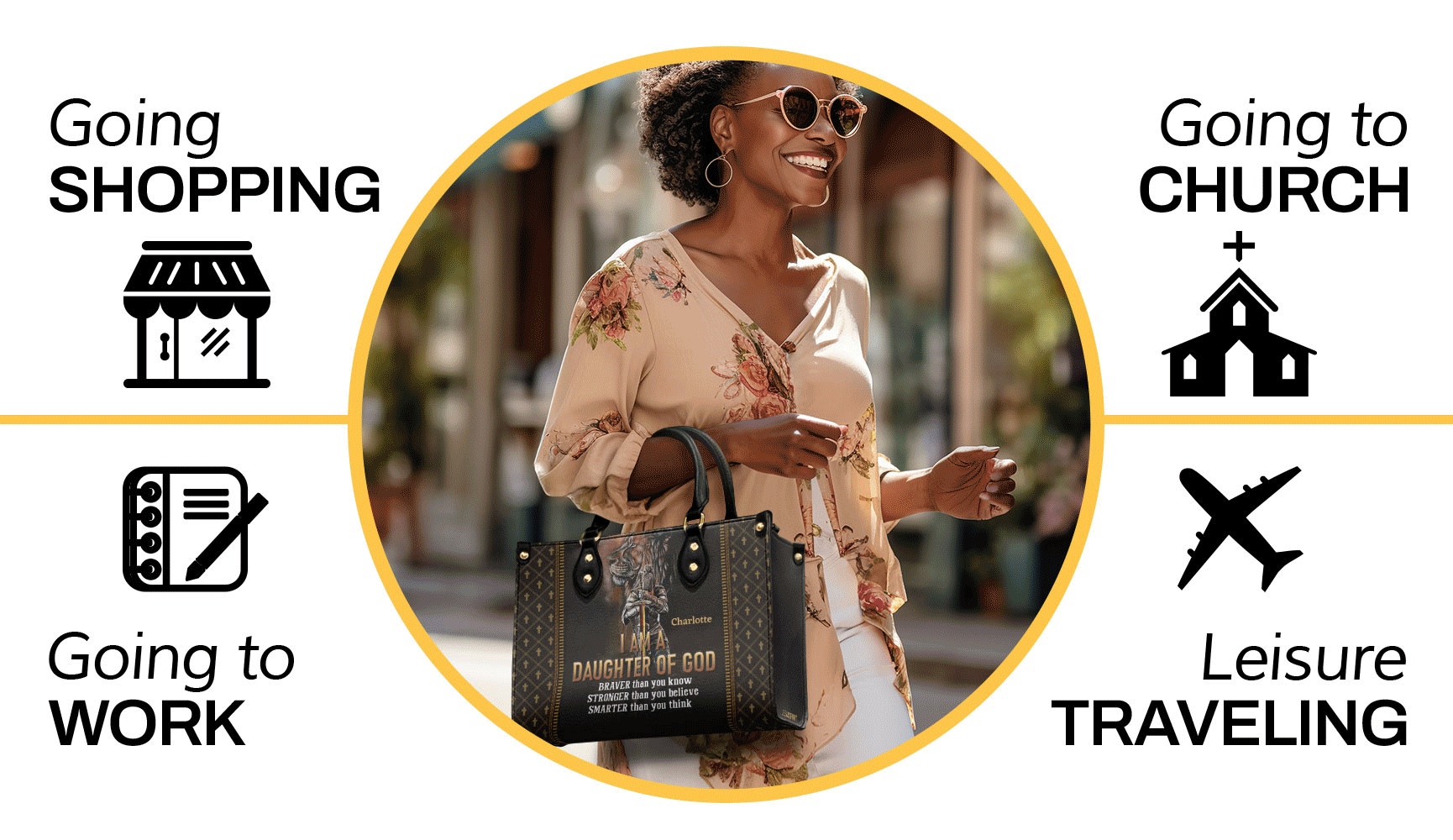 Jesuspirit's Personalized Leather Handbag intertwines faith and fashion, creating an uplifting accessory for Christian women. Adorned with meaningful Bible verses, each handbag carries a piece of your faith journey wherever you go. It's a profound reminder of love and strength within you. Perfect for yourselfor as a heartfelt religious gift for Christian ladies on special occasions.