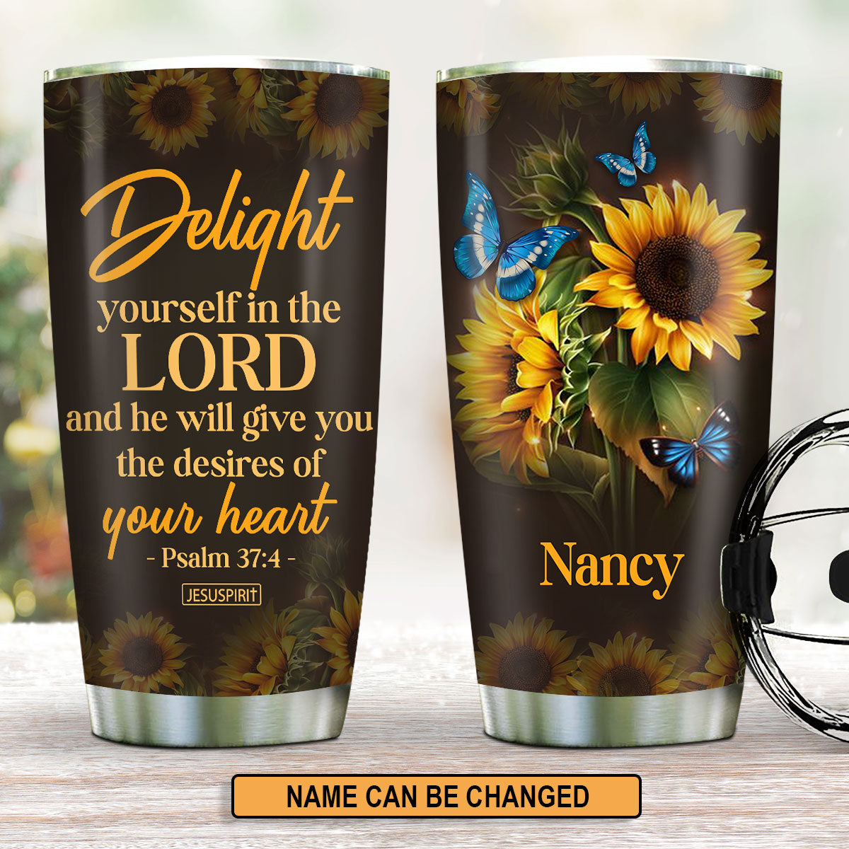 Personalized Stainless Steel Tumbler 20oz - Delight Yourself In The Lord NUH437