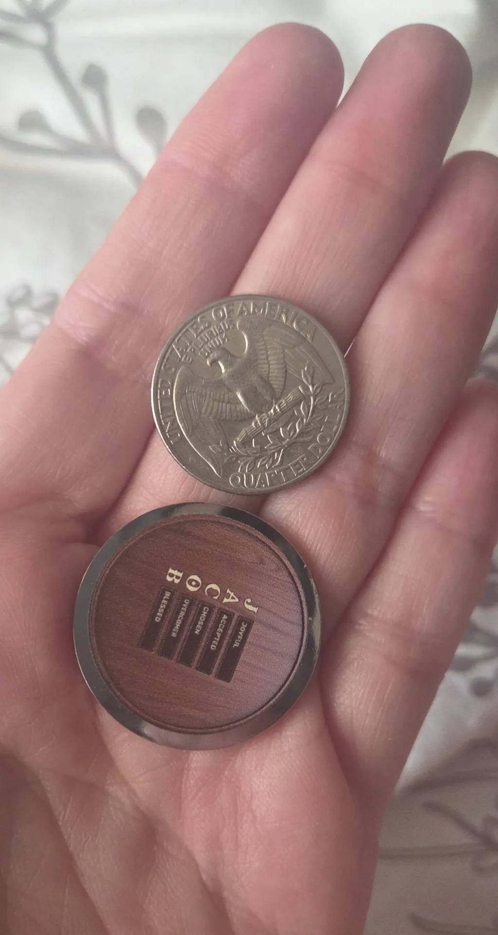 Want a real review? This thing is TINY! I did not receive a big coin and can't even read the words on the back! The writing is way too small. In everyone's pictures I see on reviews the coin is MUCH bigger but this one is not. And for $22 its a sticker on a metal disc. I can't give this as a gift. Highly disappointed. The pictures and video shows this as much bigger.