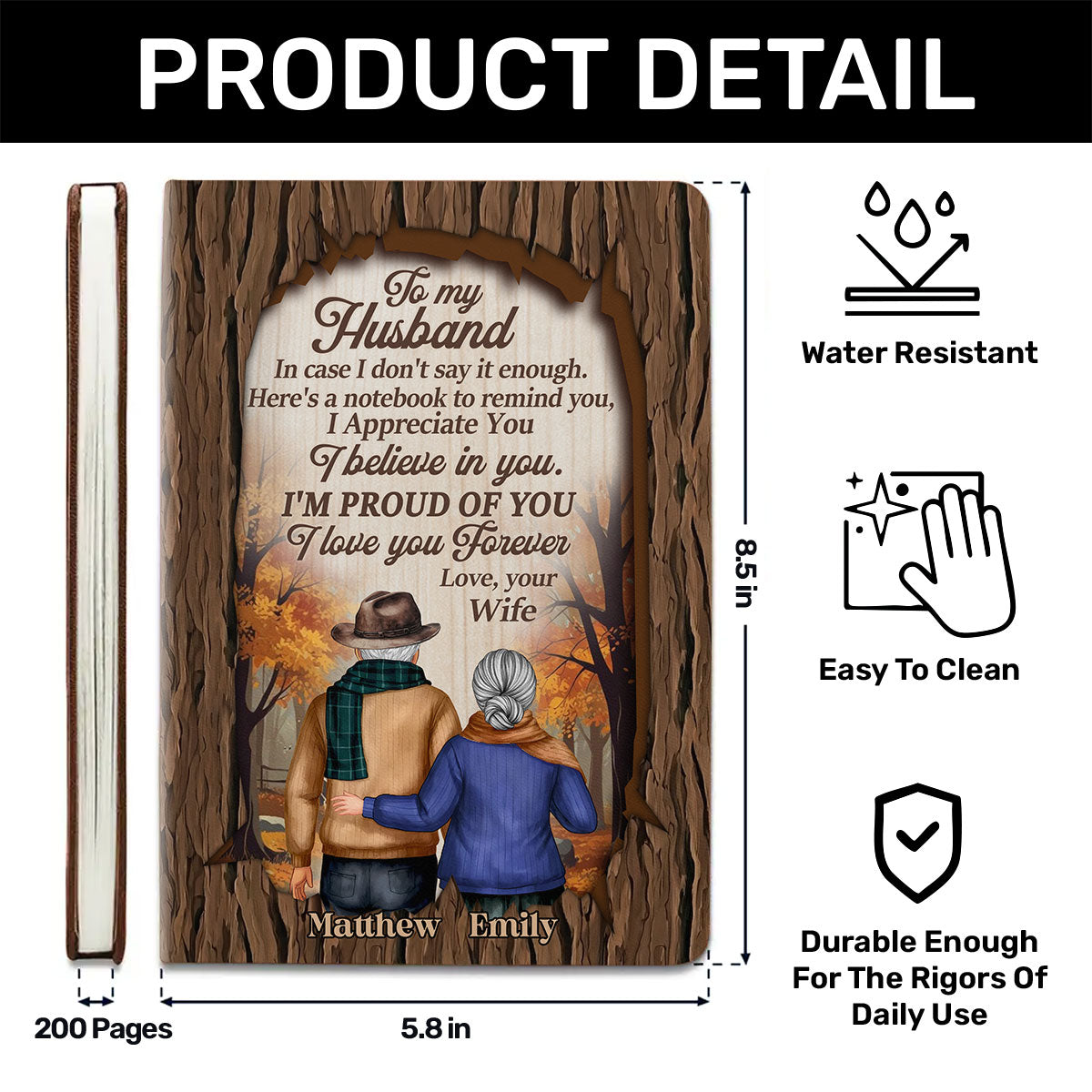 To My Husband | Personalized Leather Cover Notebook